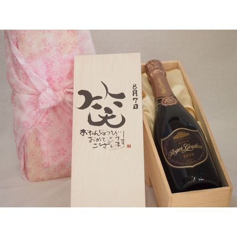誕生日8月7日セット おたんじょうびおめでとうございます 笑う門には福来たるロジャーグラートロゼ・ブリュットスパークリングワイン辛口(スペイン)750ml デザイン書道家 榮田 清峰作