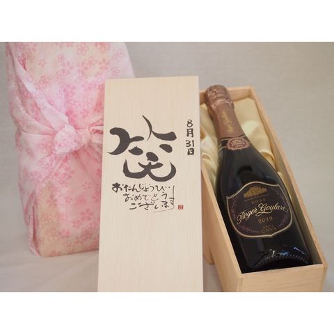 誕生日8月31日セット おたんじょうびおめでとうございます 笑う門には福来たるロジャーグラートロゼ・ブリュットスパークリングワイン辛口(スペイン)750ml デザイン書道家 榮田 清峰作