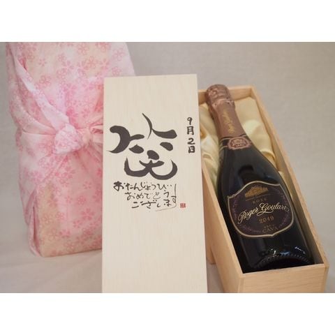 誕生日9月2日セット おたんじょうびおめでとうございます 笑う門には福来たるロジャーグラートロゼ・ブリュットスパークリングワイン辛口(スペイン)750ml デザイン書道家 榮田 清峰作