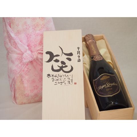 誕生日9月9日セット おたんじょうびおめでとうございます 笑う門には福来たるロジャーグラートロゼ・ブリュットスパークリングワイン辛口(スペイン)750ml デザイン書道家 榮田 清峰作