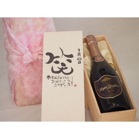 誕生日9月23日セット おたんじょうびおめでとうございます 笑う門には福来たるロジャーグラートロゼ・ブリュットスパークリングワイン辛口(スペイン)750ml デザイン書道家 榮田 清峰作