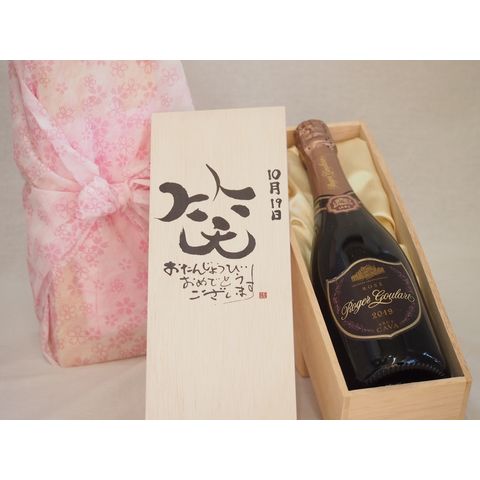誕生日10月19日セット おたんじょうびおめでとうございます 笑う門には福来たるロジャーグラートロゼ・ブリュットスパークリングワイン辛口(スペイン)750ml デザイン書道家 榮田 清峰作