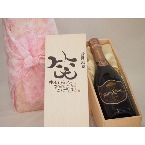 誕生日10月21日セット おたんじょうびおめでとうございます 笑う門には福来たるロジャーグラートロゼ・ブリュットスパークリングワイン辛口(スペイン)750ml デザイン書道家 榮田 清峰作