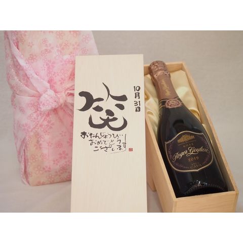 誕生日10月31日セット おたんじょうびおめでとうございます 笑う門には福来たるロジャーグラートロゼ・ブリュットスパークリングワイン辛口(スペイン)750ml デザイン書道家 榮田 清峰作