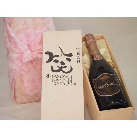 誕生日11月2日セット おたんじょうびおめでとうございます 笑う門には福来たるロジャーグラートロゼ・ブリュットスパークリングワイン辛口(スペイン)750ml デザイン書道家 榮田 清峰作