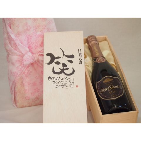 誕生日11月6日セット おたんじょうびおめでとうございます 笑う門には福来たるロジャーグラートロゼ・ブリュットスパークリングワイン辛口(スペイン)750ml デザイン書道家 榮田 清峰作