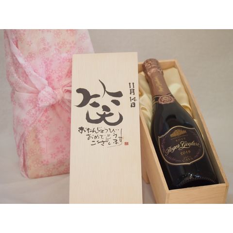 誕生日11月14日セット おたんじょうびおめでとうございます 笑う門には福来たるロジャーグラートロゼ・ブリュットスパークリングワイン辛口(スペイン)750ml デザイン書道家 榮田 清峰作