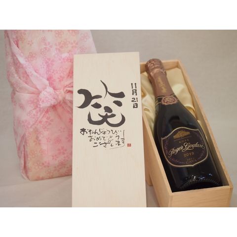 誕生日11月21日セット おたんじょうびおめでとうございます 笑う門には福来たるロジャーグラートロゼ・ブリュットスパークリングワイン辛口(スペイン)750ml デザイン書道家 榮田 清峰作