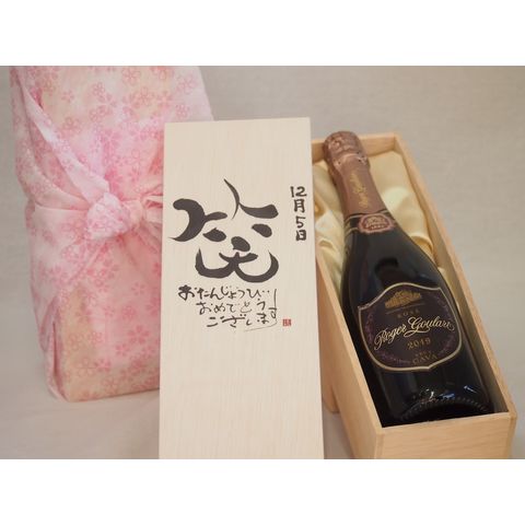 誕生日12月5日セット おたんじょうびおめでとうございます 笑う門には福来たるロジャーグラートロゼ・ブリュットスパークリングワイン辛口(スペイン)750ml デザイン書道家 榮田 清峰作