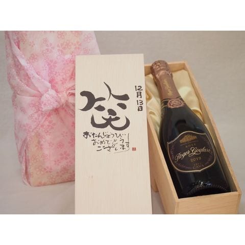 誕生日12月13日セット おたんじょうびおめでとうございます 笑う門には福来たるロジャーグラートロゼ・ブリュットスパークリングワイン辛口(スペイン)750ml デザイン書道家 榮田 清峰作