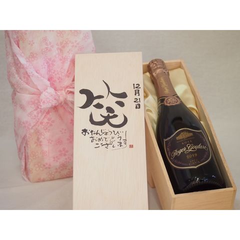 誕生日12月21日セット おたんじょうびおめでとうございます 笑う門には福来たるロジャーグラートロゼ・ブリュットスパークリングワイン辛口(スペイン)750ml デザイン書道家 榮田 清峰作