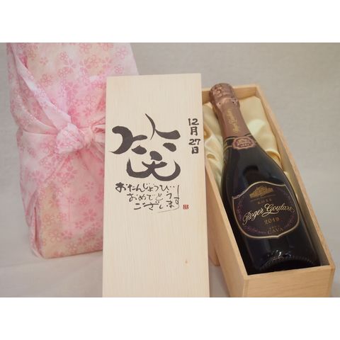 誕生日12月27日セット おたんじょうびおめでとうございます 笑う門には福来たるロジャーグラートロゼ・ブリュットスパークリングワイン辛口(スペイン)750ml デザイン書道家 榮田 清峰作