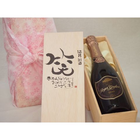 誕生日12月31日セット おたんじょうびおめでとうございます 笑う門には福来たるロジャーグラートロゼ・ブリュットスパークリングワイン辛口(スペイン)750ml デザイン書道家 榮田 清峰作