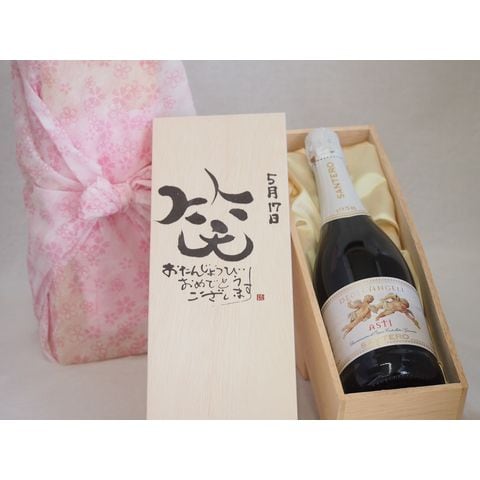 誕生日5月17日セット おたんじょうびおめでとうございます 笑う門には福来たる天使のアスティ イタリアスパークリングワイン(甘口)750ml デザイン書道家 榮田 清峰作