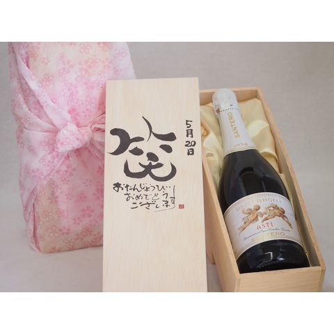 誕生日5月20日セット おたんじょうびおめでとうございます 笑う門には福来たる天使のアスティ イタリアスパークリングワイン(甘口)750ml デザイン書道家 榮田 清峰作