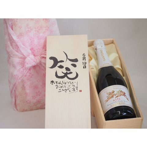 誕生日6月10日セット おたんじょうびおめでとうございます 笑う門には福来たる天使のアスティ イタリアスパークリングワイン(甘口)750ml デザイン書道家 榮田 清峰作