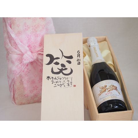 誕生日6月21日セット おたんじょうびおめでとうございます 笑う門には福来たる天使のアスティ イタリアスパークリングワイン(甘口)750ml デザイン書道家 榮田 清峰作
