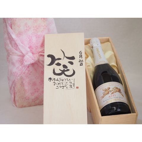 誕生日6月28日セット おたんじょうびおめでとうございます 笑う門には福来たる天使のアスティ イタリアスパークリングワイン(甘口)750ml デザイン書道家 榮田 清峰作