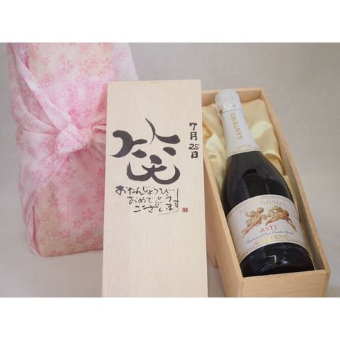 誕生日7月25日セット おたんじょうびおめでとうございます 笑う門には福来たる天使のアスティ イタリアスパークリングワイン(甘口)750ml デザイン書道家 榮田 清峰作