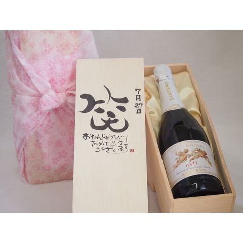 誕生日7月27日セット おたんじょうびおめでとうございます 笑う門には福来たる天使のアスティ イタリアスパークリングワイン(甘口)750ml デザイン書道家 榮田 清峰作