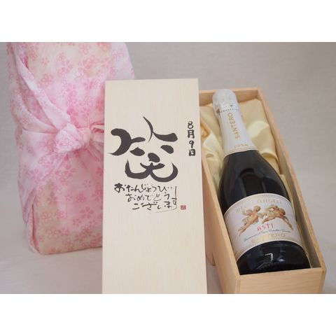 誕生日8月9日セット おたんじょうびおめでとうございます 笑う門には福来たる天使のアスティ イタリアスパークリングワイン(甘口)750ml デザイン書道家 榮田 清峰作