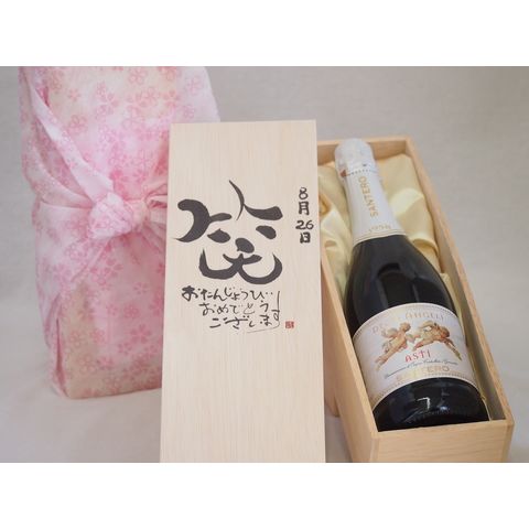 誕生日8月26日セット おたんじょうびおめでとうございます 笑う門には福来たる天使のアスティ イタリアスパークリングワイン(甘口)750ml デザイン書道家 榮田 清峰作