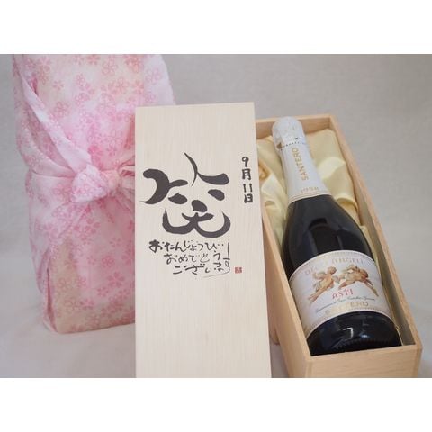 誕生日9月11日セット おたんじょうびおめでとうございます 笑う門には福来たる天使のアスティ イタリアスパークリングワイン(甘口)750ml デザイン書道家 榮田 清峰作