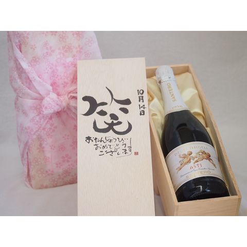 誕生日10月14日セット おたんじょうびおめでとうございます 笑う門には福来たる天使のアスティ イタリアスパークリングワイン(甘口)750ml デザイン書道家 榮田 清峰作