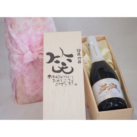 誕生日10月17日セット おたんじょうびおめでとうございます 笑う門には福来たる天使のアスティ イタリアスパークリングワイン(甘口)750ml デザイン書道家 榮田 清峰作