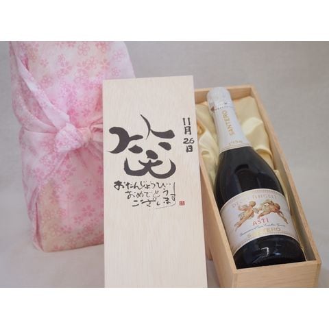 誕生日11月26日セット おたんじょうびおめでとうございます 笑う門には福来たる天使のアスティ イタリアスパークリングワイン(甘口)750ml デザイン書道家 榮田 清峰作