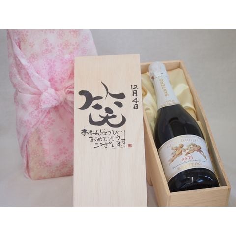 誕生日12月4日セット おたんじょうびおめでとうございます 笑う門には福来たる天使のアスティ イタリアスパークリングワイン(甘口)750ml デザイン書道家 榮田 清峰作