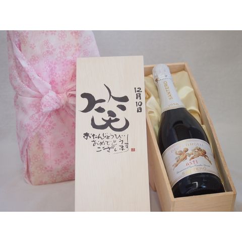 誕生日12月10日セット おたんじょうびおめでとうございます 笑う門には福来たる天使のアスティ イタリアスパークリングワイン(甘口)750ml デザイン書道家 榮田 清峰作