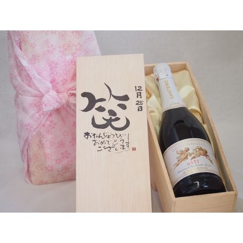誕生日12月25日セット おたんじょうびおめでとうございます 笑う門には福来たる天使のアスティ イタリアスパークリングワイン(甘口)750ml デザイン書道家 榮田 清峰作