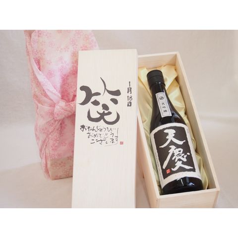 誕生日1月18日セット おたんじょうびおめでとうございます 笑う門には福来たる日本酒天慶大吟醸 早川酒造部(三重県)720mlデザイン書道家 榮田 清峰作