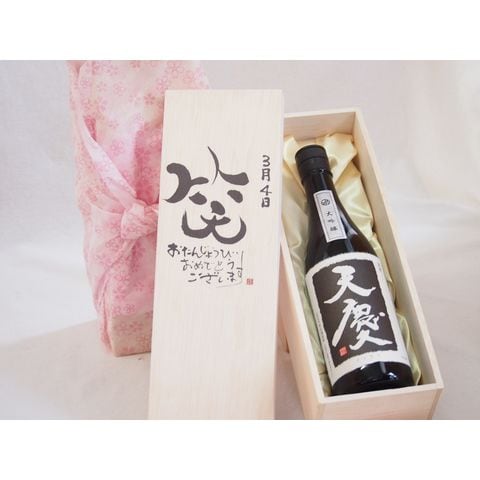 誕生日3月4日セット おたんじょうびおめでとうございます 笑う門には福来たる日本酒天慶大吟醸 早川酒造部(三重県)720mlデザイン書道家 榮田 清峰作
