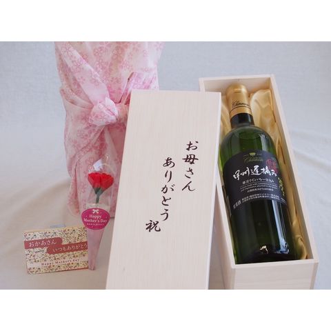 母の日 お母さんありがとう木箱セット 甲州遅摘み完熟甘口 白ワイン (山梨県) 720ml 母の日カードとカーネイション付