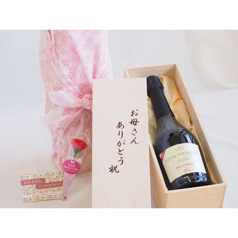 母の日 お母さんありがとう木箱セット ヴァン・ドゥ・ツーリズム スパークリング赤ワイン (スペイン) 750ml 母の日カードとカーネイション付