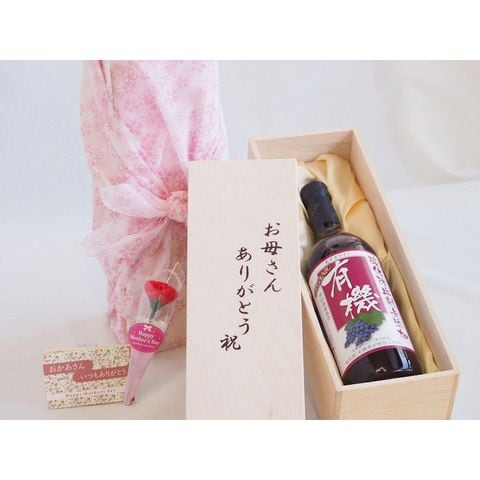 母の日 お母さんありがとう木箱セット 酸化防止剤無添加有機あずさワイン赤 (長野県) 720ml 母の日カードとカーネイション付