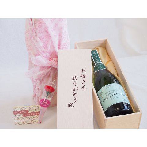 母の日 お母さんありがとう木箱セット 山梨県産葡萄使用スパークリングワインマディデラウェア中口 (山梨県) 750ml 母の日カードとカーネイション付