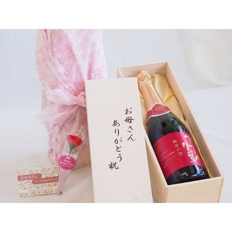 母の日 お母さんありがとう木箱セット 酵母の泡ベーリーAルージュ赤ワイン (山梨県) 720ml 母の日カードとカーネイション付