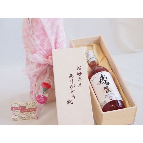 母の日 お母さんありがとう木箱セット 日本産キャンベルアーリ使用おたる醸造ロゼワインやや甘口 (北海道) 720ml 母の日カードとカーネイション付