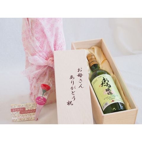 母の日 お母さんありがとう木箱セット 日本産葡萄100%使用おたる醸造デラウェア白ワインやや甘口 (北海道) 720ml 母の日カードとカーネイション付