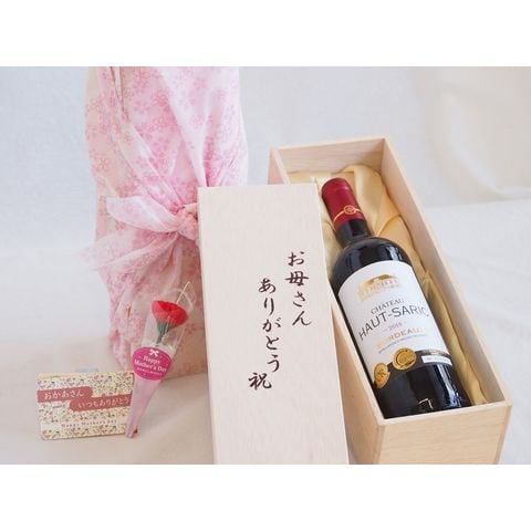 母の日 お母さんありがとう木箱セット フランスボルドー金賞赤ワイン 750ml 母の日カードとカーネイション付
