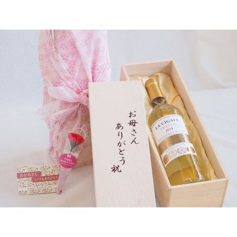 母の日 お母さんありがとう木箱セット フランスボルドー金賞白ワイン 750ml 母の日カードとカーネイション付