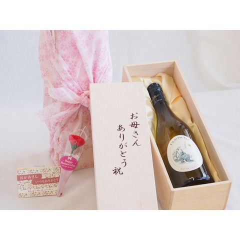 母の日 お母さんありがとう木箱セット クロード・ヴァル白ワイン (フランス) 750ml 母の日カードとカーネイション付