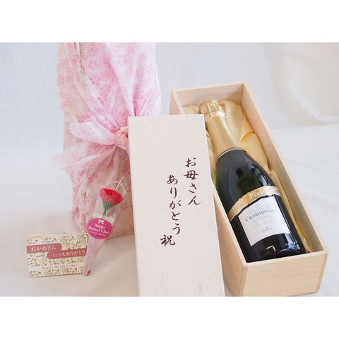母の日 お母さんありがとう木箱セット ルイ・ピカメロヴァン・ムスーブラン・ド・ブランシュルドネブリュットスパークリング白ワイン辛口 (フランス) 750ml 母の日カードとカーネイション付
