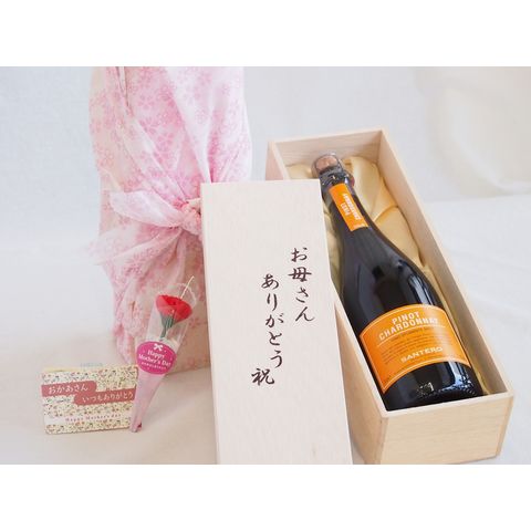 母の日 お母さんありがとう木箱セット サンテロピノシャルドネスプマンテスパークリングワイン辛口 (イタリア) 750ml 母の日カードとカーネイション付