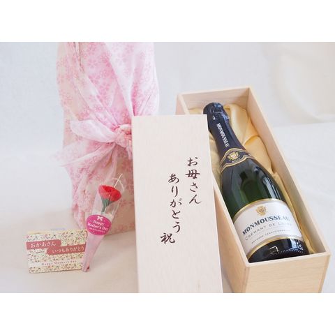 母の日 お母さんありがとう木箱セット モンムソークレマンドロワールスパークリングワイン (フランス) 750ml 母の日カードとカーネイション付