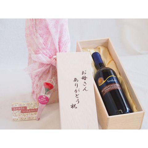 お母さんありがとう木箱セットモンテプルチアーノダブルッツォ白ワイン (イタリア) 750ml 母の日カードとカーネイション付