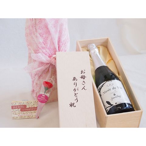母の日 お母さんありがとう木箱セット ミュゼドゥヴァンオアシス3スパークリングワイン白 750ml 母の日カードとカーネイション付